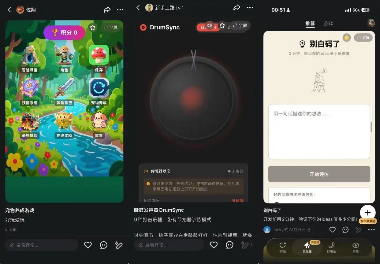 据悉,自上线至今,灵光App用户在5个月时间时间成功搓出超3000万款闪应用。这些应用覆盖游戏、生活、娱乐、旅行等多个领域。20日,灵光APP对外宣布能力大升级,在多智能体协作、全模态生成和手机端原生能力上均有显著提升,并上线了灵光圈,打通了从生成到分享的完整链路。