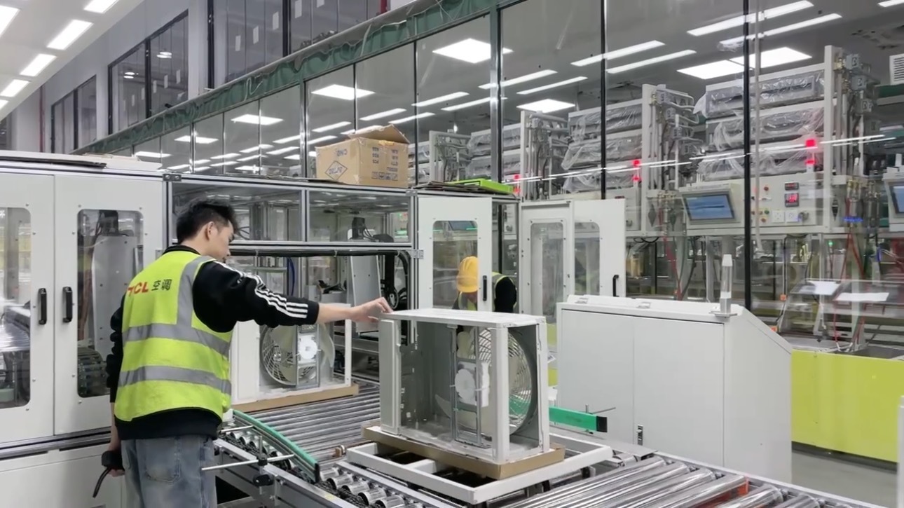 距离芯粤能约20公里外的TCL空调南沙智能制造基地同样马力全开。这座于2025年年底投产的基地,正经历首个春节“大考”。只见车间里机器轰鸣,机械臂精准作业,一台台高效节能的空调在完成检测后即将装箱发运,目的地包括东南亚、中东、非洲等地区“一带一路”沿线港口。