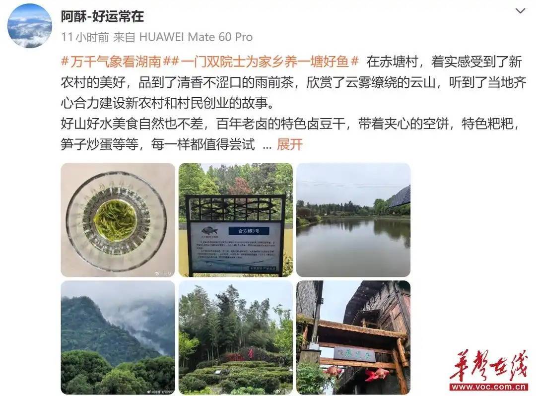 这座曾经偏远落后、甚至被贴上“软弱涣散村党组织”标签的村落,如今已然蜕变为“和美乡村”的生动样板,用细微处的蝶变,诠释着中国式现代化的民生温度。“在这里,我品到了清香不涩口的雨前茶,欣赏了云雾缭绕的云山,听到了当地齐心合力建设新农村和村民创业的故事,着实感受到了新农村的美好。”网络名人@阿酥分享着自己的探访感受。
