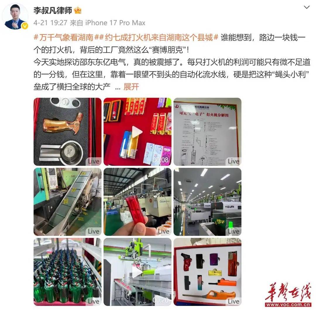 “一只小小的打火机,竟撑起了一座城的产业传奇,这就是了不起的中国制造!”网络名人@乐小牛由衷点赞。